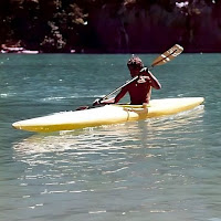 (tegen ons in). We gaan even aan de kant en daarna ga ik in de kajak een beetje